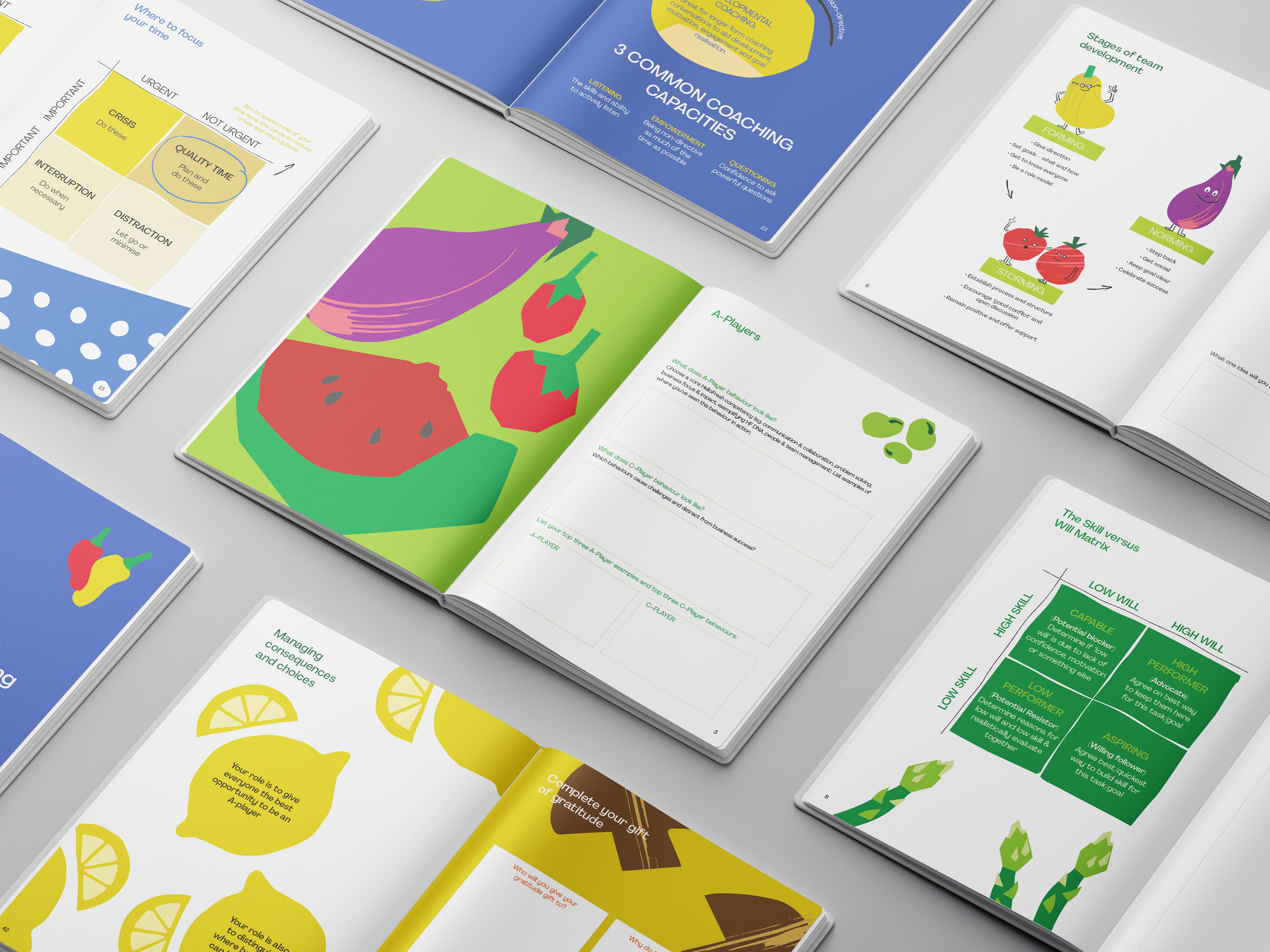 HelloFresh set out to create a leadership programme that would empower new and experienced managers to unlock their potential and lead with confidence — all while embodying the brand’s core competencies and DNA. The challenge was to design a visual identity that felt distinct yet recognisably HelloFresh, creating an engaging internal experience for people leaders. Working within the brand’s established guidelines, the design direction introduced a playful twist through custom fruit and vegetable characters that brought warmth, personality, and joy to the content. The result was an engaging, branded leadership programme that resonated across the business — and was so well received that was later incorporated into HelloFresh’s external brand toolkit. Services: Branding, Illustration, Internal Communications, Design System