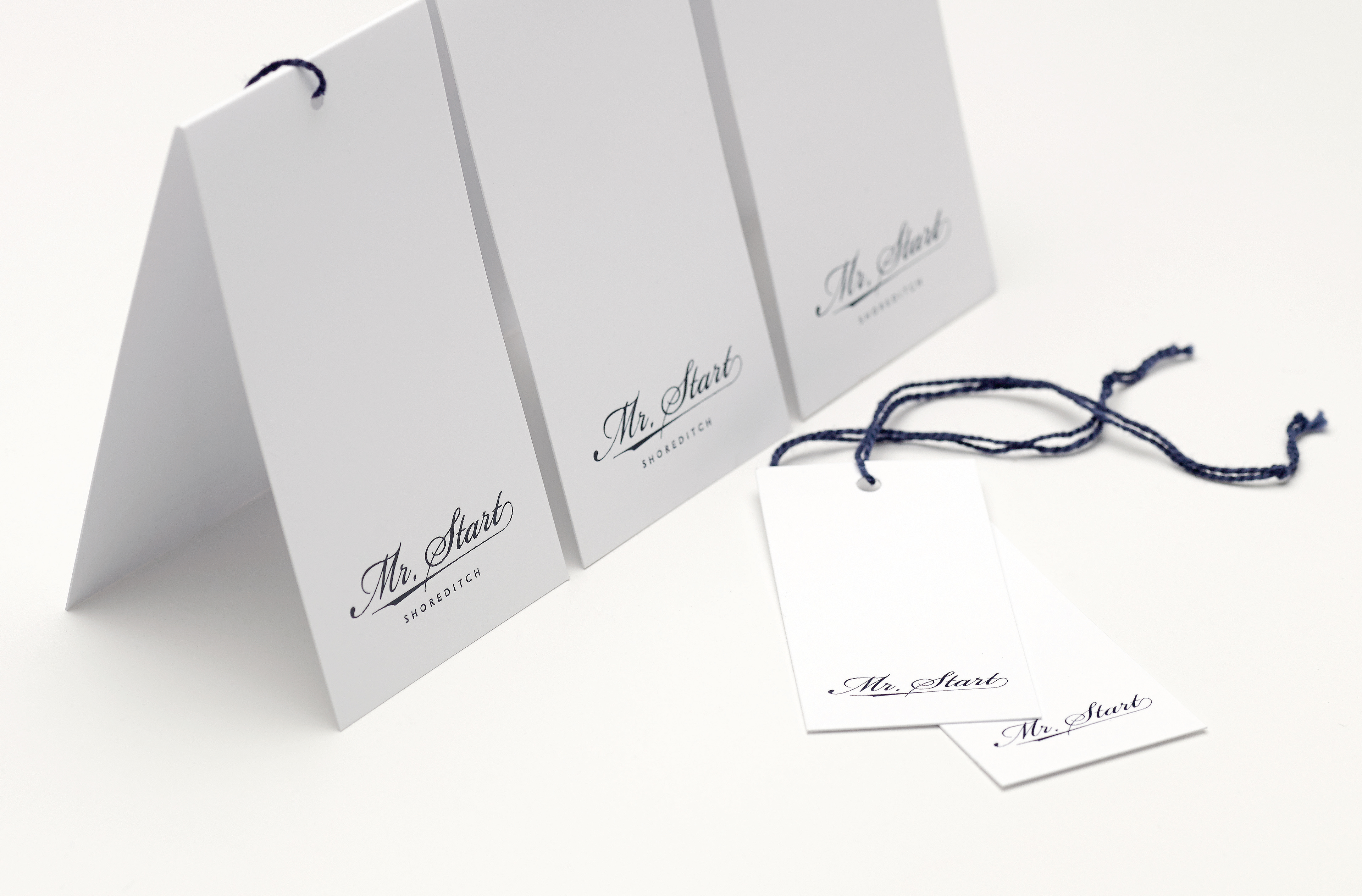 Renowned for its contemporary tailoring, Mr Start wanted to push the brand and marketing collateral into a more premium arena. With exceptional wholesale destinations such as Harrods and Selfridges, the instore collateral such as hang tags, buttons bags and hangers needed an uplift to be able to stand out from the top brands they would be in the company of. Other work included lookbooks and show invitations. Services: Brand Communication, Print Created during time at Made Design